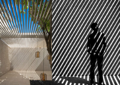 อุปกรณ์ตกแต่งรูปแบบท่อนไม้ระแนง เพื่อบังแดดหรือสายตา ใช้ได้ทั้งผนังหรือฝ้า