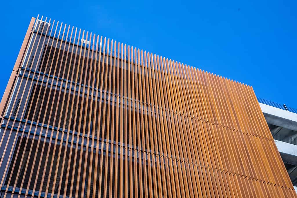 แผ่น metal sheet WOOD FRAME วัสดุรูปแบบท่อนไม้ระแนงสำหรับงานตกแต่งอาคาร เพื่อบังแดดหรือสายตา ใช้ได้ทั้งผนังหรือฝ้า ที่มีความเหมือนดุจไม้จริง แก้ปัญหาข้อกำจัดของการใช้ไม้จริง ทั้งความทนทาน ความสม่ำเสมอของสีสัน พื้นผิวที่หลากหลาย น้ำหนักที่เบากว่า การติดตั้งที่รวดเร็วเรียบง่าย ทั้งภายในและภายนอกอาคาร เป็นวัสดุทางเลือกสำหรับการลดใช้วัสดุธรรมชาติเพื่อรักษาสิ่งแวดล้อม และคงทนต่อสภาวะอากาศ